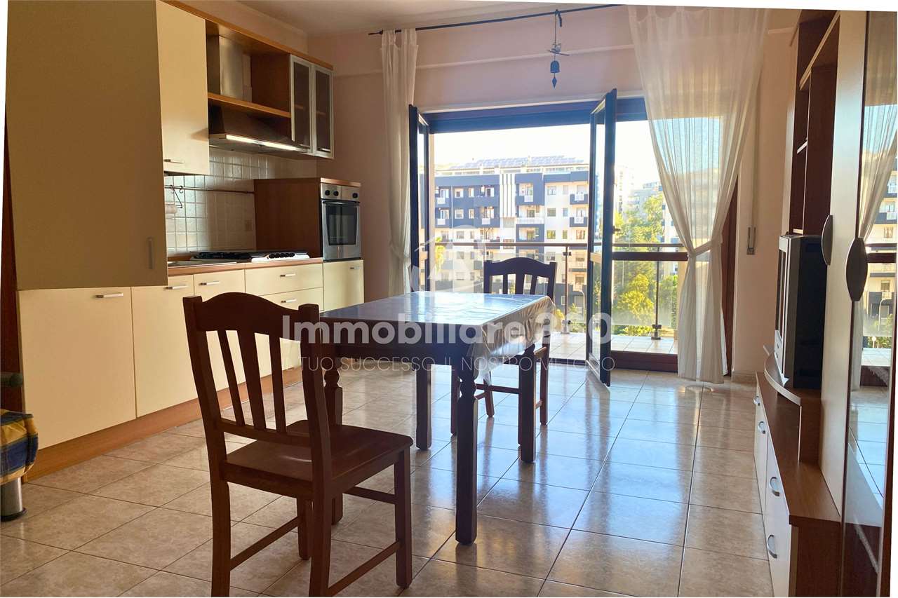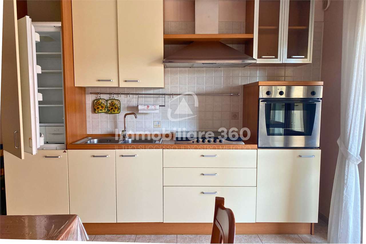In uno stabile di recente costruzione proponiamo in affitto un comodo appartamento arredato. L'immobile è situato al terzo piano con ascensore, presenta finiture moderne ed è completo di arredi nuovi. L'ingresso si apre direttamente sulla luminosa zona giorno open space, con cucina attrezzata, tavolo da pranzo e parete con televisore. Dal corridoio si accede alla zona notte, composta da due camere da letto, un ripostiglio e due bagni: uno con vasca e l'altro con box doccia e lavatrice. Completano la soluzione i posti auto liberi nella corte condominiale. CLASSE ENERGETICA: In fase di valutazione
