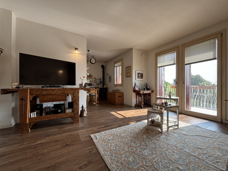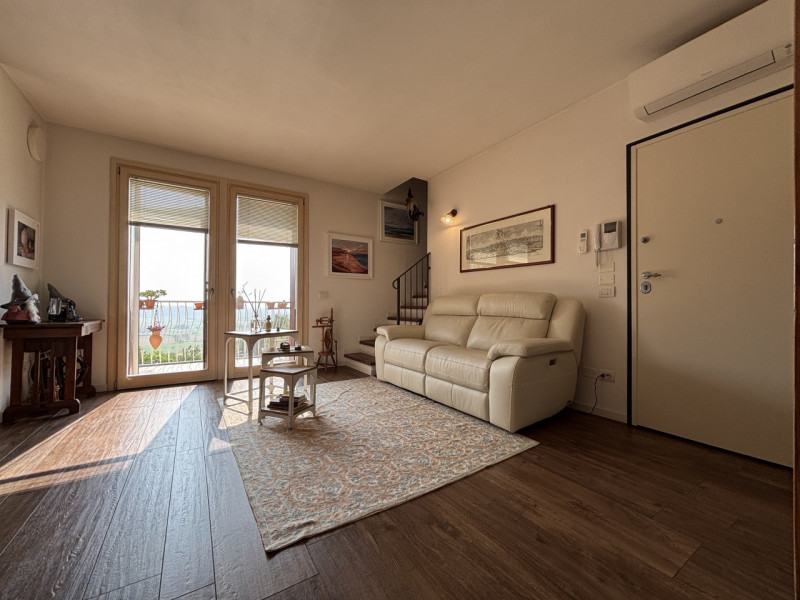 Se cerchi una casa comoda, luminosa e con vista panoramica, questa soluzione fa al caso tuo! Situato in una piccola palazzina di sole quattro unità, l’appartamento si sviluppa al primo e ultimo piano, offrendo privacy e tranquillità. Entrando, ti accoglie un ampio soggiorno con cucina a vista, perfetto per momenti di convivialità. Dal soggiorno si accede a un terrazzo spazioso, con una vista panoramica mozzafiato, ideale per pranzi all’aperto o semplicemente per godersi il panorama. Questo terrazzo può essere facilmente attrezzato con un camino, creando un angolo accogliente e caldo nelle stagioni più fredde. Dal soggiorno, tramite una scala, si raggiunge il piano mansardato, che può essere utilizzato come spazio extra, studio o zona relax, offrendo ulteriori possibilità di personalizzazione. La zona notte comprende due camere da letto, entrambe luminose e confortevoli, collegate da un terrazzo che permette di godere di un ulteriore spazio esterno. Il bagno principale, finestrato, è dotato di doccia, mentre un secondo bagno, pratico e funzionale, può essere utilizzato anche come lavanderia. Al piano interrato, trovi un garage doppio in lunghezza, che offre spazio ampio e comodo per due auto e altro stoccaggio. L’appartamento beneficia anche di un impianto fotovoltaico a livello condominiale, contribuendo a ridurre i costi energetici e a vivere in modo più sostenibile. Una soluzione ideale per chi cerca un’abitazione moderna, con ottime finiture, vista panoramica e un contesto tranquillo. Contattaci per maggiori dettagli o per organizzare una visita! --- annuncio pubblicato con GESTIONALEIMMOBILIARE.it