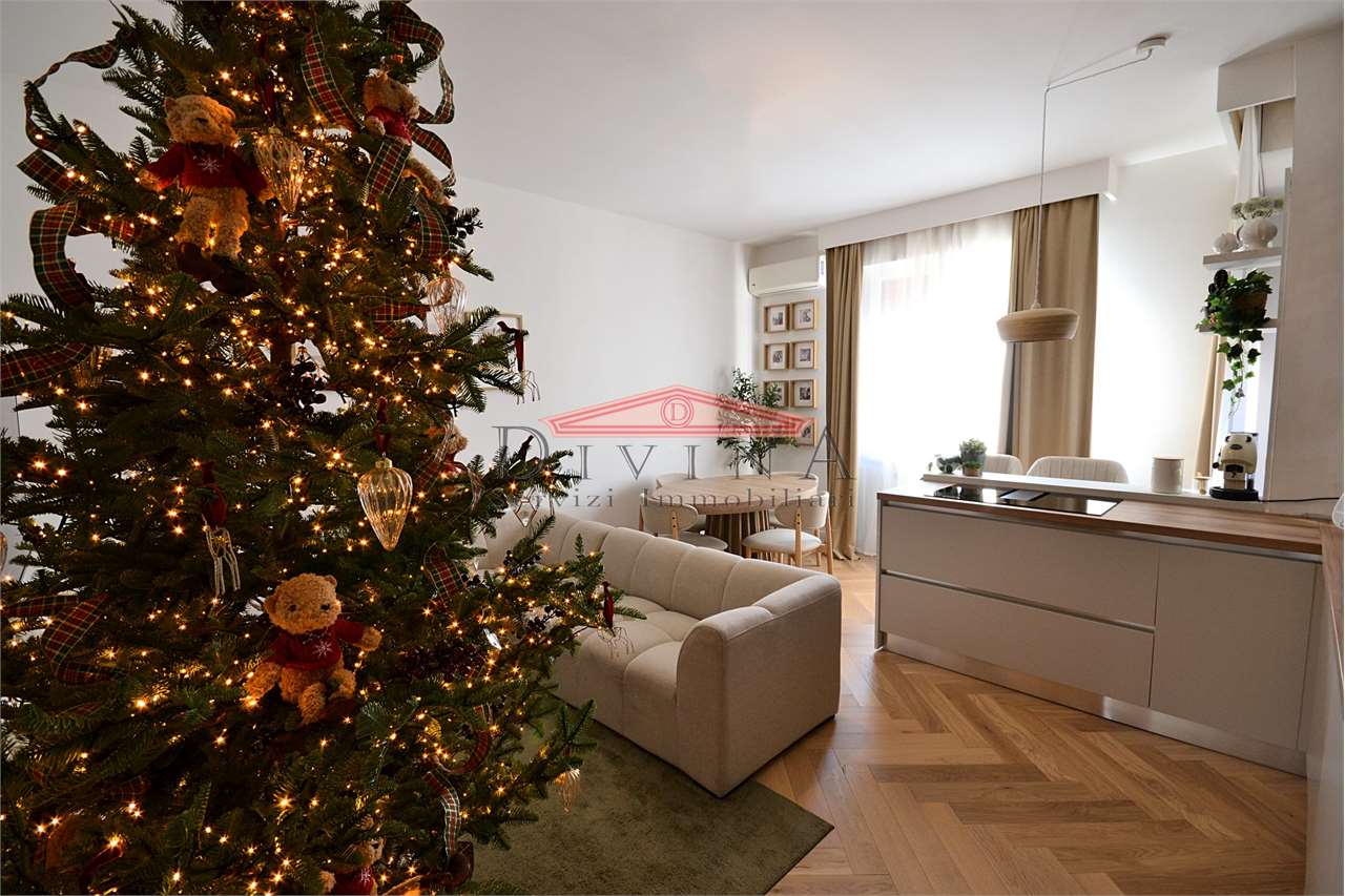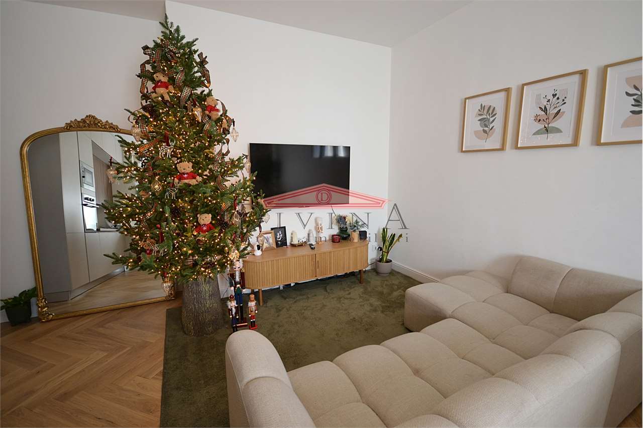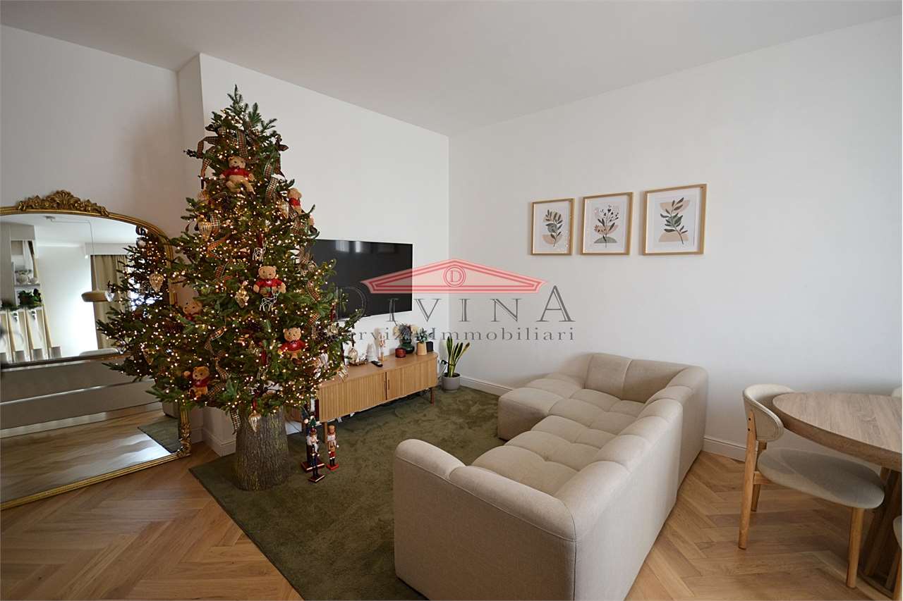 Paderno Dugnano zona residenziale vicinanze stazione FNM In signorile contesto condominiale proponiamo esclusivo Appartamento Ristrutturato con Finiture di Pregio situato al settimo e ultimo piano. Questo raffinato appartamento offre ambienti luminosi e spaziosi, progettati con attenzione ai dettagli: la zona giorno si sviluppa in un open space, dove il soggiorno, la cucina a vista, la zona salotto e la zona pranzo si fondono armoniosamente in un ambiente luminoso e accogliente, ideale per momenti conviviali e cene in compagnia, camera da letto matrimoniale accessoriata di cabina armadio con porta di ingresso a specchio, seconda camera da letto, terza stanza versatile, perfetta come studio o terza camera, bagno padronale con pavimentazione continua in lastre di gress porcellanato effetto marmo Calacatta levigato formato grande, doccia realizzata con un cristallo trasparente a tutta altezza soluzione "walk-in", secondo bagno/lavanderia, ripostiglio, ampio balcone panoramico, locale cantina la piano interrato e locale solaio. Dettagli ristrutturazione: pavimento in pregiato parquet in rovere naturale posa a spina ungherese (Chevron) in tutti gli ambienti porte bianche laccate a bugne rettangolari impianto elettrico nuovo con placche Living Now touch impianto idraulico nuovo domotica di base impianto aria condizionata e pompa di calore a split infissi in pvc doppio vetro (in fase di sostituzione dal proprietario) termosifoni a gestione valvole termostatiche Un'opportunità unica per chi cerca eleganza, comfort e una posizione privilegiata. Possibilità acquistare il box CLASSE ENERGETICA: In fase di valutazione