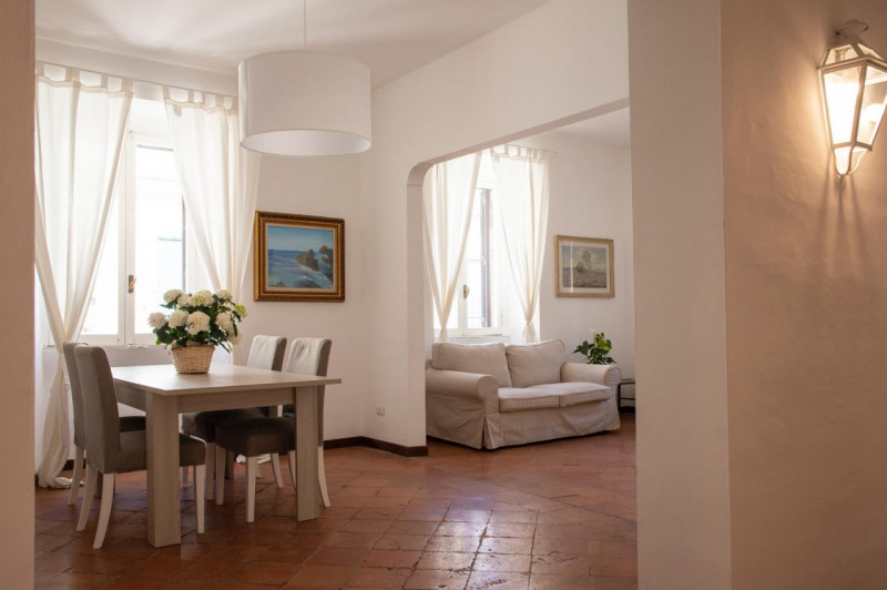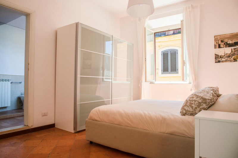 TRASTEVERE - precisely in Vicolo della Scala, Alpha Immobiliare is renting an apartment located on the third floor. This elegant apartment in the heart of Trastevere is in one of its most quiet and characteristic alleys and is composed of two bedrooms each with king size bed, two bathrooms (one with bathtub and one with shower,) large kitchen, double living room and views on four sides that makes it a very bright environment. ONLY FOR NON-RESIDENTS Renovated with care and furnished with wi-fi, smart tv and all the appliances, washing machine and dishwasher. Independent heating and air conditioning in all rooms. There is also a panoramic and equipped condominium terrace that can be free accessed. To be rented to qualified foreigners workers with proved monthly income, utilities NOT included. Only transitional contracts starting from mid-January 2026, Requested price Euro 2.500,00 per month including condominium and wifi (fiber optic) For more information you can text Alpha Immobiliare on Whatsapp at +390658331153 or send an e-mail to info@alphaimmobiliare.com --- annuncio pubblicato con GESTIONALEIMMOBILIARE.it