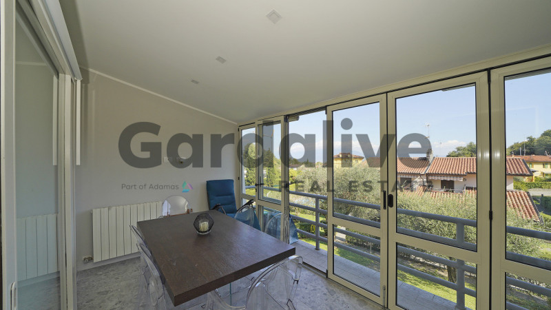 SOIANO DEL LAGO - In comodissima zona centrale al paese, comoda ai servizi, poste, scuole, farmacia, alimentari, panificio, ristoranti ed allo stesso tempo comodo a piste ciclabili o passeggiate ed a soli 2 km dalle spiagge di Manerba e Moniga, in contesto di poche unità con piscina, proponiamo in vendita appartamento al primo ed ultimo piano completamente ristrutturato a nuovo composto così come segue: ingresso in zona living con due poltrone letto di design , cucina a vista eventualmente separabile dalla zona giorno, ampia terrazza verandata di generose metrature con scorcio di vista lago e vista aperta panoramica, utilizzabile anche in inverno come prolungamento della zona living, bagno finestrato completamente ristrutturato e camera da letto matrimoniale con balcone comodo e utilizzabile. L'appartamento è stato curato in ogni particolare e dettaglio, completo di ogni comfort. Completa l'unità un giardino esclusivo per l'appartamento di circa 20mq, utile per prendere il sole o mangiare esternamente oltre al terrazzo, un posto auto privato coperto ed una taverna interrata, distaccata dall'appartamento, completamente ristrutturata ed adibita a piccola camera ospiti con bagno con doccia o utilizzabile comunque come ripostiglio. --- annuncio pubblicato con GESTIONALEIMMOBILIARE.it