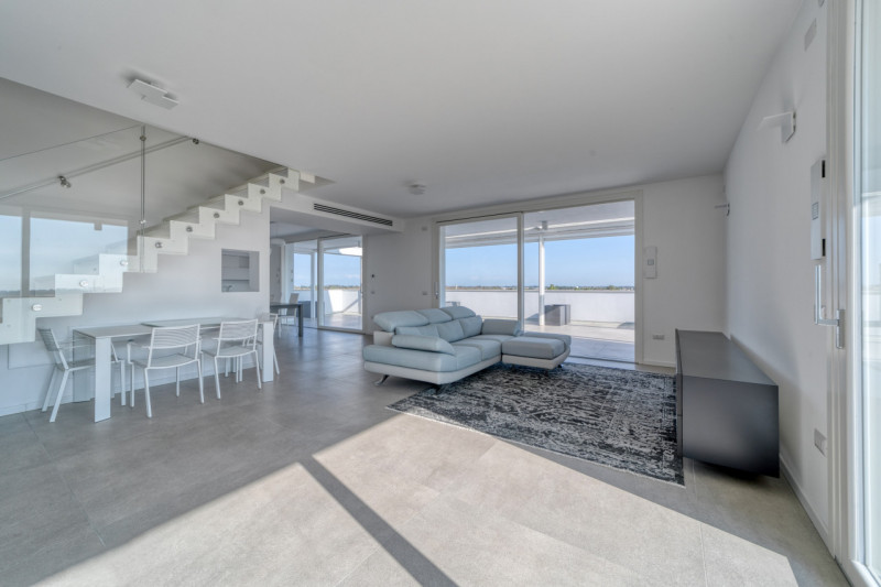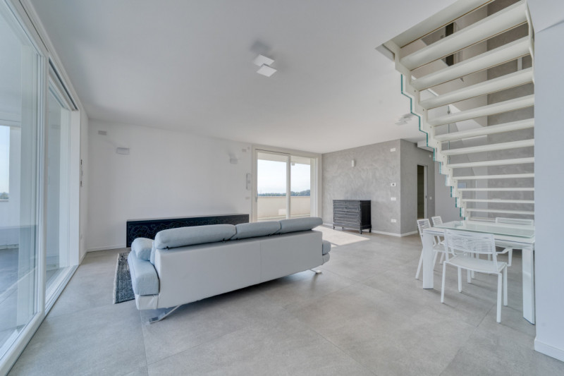 VIGONZA Zona Perarolo. ATTICO recentissimo, come nuovo, fra i più prestigiosi della zona di Vigonza; unico nel suo genere in zona comoda a tutti i principali servizi ed alle più importanti vie di comunicazione. Consapevolezza energetica, sostenibilità e comfort! Ecco i punti di partenza di un progetto ad alto standard abitativo dove innovazioni tecniche, valorizzano un disegno architettonico che desidera rispondere al bisogno, sempre più incisivo, di un nuovo vivere! L'attico si sviluppa su due piani, quinto e sesto, per mq 175 calpestabili e mq 215 commerciali su una palazzina di 19 unità, dotata di ascensore. Offre una splendida zona giorno open space valorizzata dalle ampie vetrate, con accesso alla splendida terrazza panoramica di Mq 100 sviluppata su 2 lati, anti e bagno a giorno. La zona notte mansardata con travi in legno a vista sbiancate, propone 3 spaziose camere da letto, 2 bagni finestrati con doccia e locale ad uso cabina armadi - ripostiglio. A completare l'abitazione, un ampio garage doppio in lunghezza con basculante motorizzato e cantina. L’appartamento non è mai stato abitato e viene venduto con arredo compreso nel prezzo. Il valore aggiunto dell'immobile è la grande attenzione ai dettagli strutturali e ai materiali scelti, che puntano a realizzare un prodotto con isolamento acustico e termico ad alta efficienza. Riscaldamento a pavimento, aria condizionata, ventilazione meccanica, impianto fotovoltaico, impianto domotico, allarme. Classe Energetica A2. Consegna immediata. --- annuncio pubblicato con GESTIONALEIMMOBILIARE.it