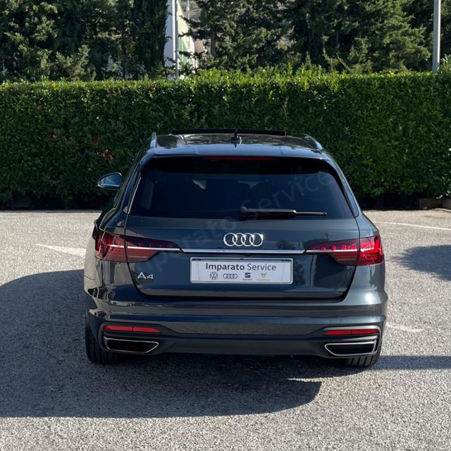Imparato Service Srl Unipersonale Via Marisa Bellisario,23 Area Ind. 84035 Polla SA ? Italia Cell.: Fabiano +39 3466035552 NOTE: ? Manutenzione presso Service Partner Ufficiale; ? Auto non importata vendita nazione Italia; ? Service digitale disponibile per certificarne manutenzione; ? Km certificati; ? Disponibile in sede per visione e prova su strada; ? Prezzo inserito valido senza permute; ? Passaggio escluso; ? Iva Deducibile; ? Finanziabile; ? Garanzia 12 mesi; ? Possibilità di estensione garanzia fino a un massimale di 3 anni; ? Alla consegna lavaggio tappezzeria e igienizzazione abitacolo. Colore: Grigio Manhattan Metallizzato Accessori in rilievo: ? Cerchi in lega, 5 razze parallele, 7,5J x 17, pneumatici 225/50 R17 ? Superfici decorative Nero Opaco ? S tronic ? Sistema di navigazione e infotainment Audi connect ? Audi smartphone interface ? Chiamata di emergenza e assistenza Audi connect con Audi connect Remote & Control ? Telecamere per vista aerea ? Variant/Avant ? Tessuto System ? Pacchetto assistenza per il parcheggio ? Pacchetto Assistenza Tour ? Impianto antifurto ? Fari a LED e fanali di coda a LED con indicatori di direzione dinamici posteriori ? Pacchetto Vano portaoggetti e vano bagagli ? Con telecamera multifunzionale ? Vetri Privacy (vetri oscurati) ? Pacchetto Luci Ambiente plus ? Riconoscimento della segnaletica stradale con telecamera ? Ricezione radio digitale ? Servosterzo elettromeccanico ? Sedili anteriori sportivi ? Assistente alla fermata ? Misure di protezione dei pedoni ampliate ? Vetri delle porte anteriori insonorizzanti ? Pacchetto Comfort per l?Italia Ambiente -Sistema di alimentazione Diesel ? Mild Hybrid ? Serbatoio del carburante con volume di rifornimento maggiorato ? Ruota di scorta minispare ? Bulloni delle ruote antifurto ? Attrezzi di bordo e cric ? Materiale pronto soccorso con triangolo di emergenza e giubbotti catarifrangenti ? Volante in pelle a 3 razze con multifunzione plus ? Trazione anteriore ? Audi drive select ? Sistema di fissaggio ISOFIX per i seggiolini dei bambini e cinghia di ritenuta super. per i sedili post. lat. ? Tetto panoramico scorrevole ? Schienale del sedile posteriore, sdoppiabile e ribaltabile ? Mancorrente del tetto in alluminio ? Cofano del bagagliaio ad apertura e chiusura elettriche ? Parabrezza in vetro insonorizzante ? Sicura per bambini ? Chiave del veicolo, con SAFELOCK ? Airbag per conducente e passeggero, con disattivazione airbag del passeggero ? Airbag laterali posteriori ? Pacchetto Cromo ? Rivestimento vano bagagli (versione 2) ? Inserti decorativi vernice diamantata Grigio Argento ? Specchietto esterno destro (grande campo visivo), convesso ? Specchietto retrovisivo esterno sinistro, asferico ? Aletta parasole su lato conducente e passeggero, estraibile ? Poggiatesta variabili per i sedili anteriori ? Bracciolo centrale anteriore comfort ? Audi active lane assist ? Maniglie cromate (lisce) ? Audi pre sense city ? Specchietti esterni regolabili, riscald. e ripieg. elettricamente, con funz. autom. antiabb. sui due lati ? Impianto antifurto ? Riscaldamento aria supplementare elettr. ? Indicatore di controllo della pressione dei pneumatici ? Sistema Start/Stop ? Listelli sottoporta con inserti in alluminio anteriori ? Supporto lombare a 4 vie per i sedili anteriori ? Navigatore MMI plus con MMI touch ? Assistente di parcheggio con sistema di controllo per il parcheggio plus ? Regolazione automatica degli abbaglianti ? Fari a LED ? Luci diurne ? Sistema di regolazione automatica della velocità Audi adaptive cruise control ? Fanali di coda a LED con indicatori di direzione dinamici ? Impianto lavafari ? Climatizzazione comfort a 3 zone ? Alternatore motorino di avviamento cinghia da 12 V 130-200 A ? Interfaccia di ricarica USB per i passeggeri posteriori ? Audi virtual cockpit plus ? Audi sound system ? Interfaccia Bluetooth