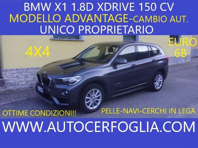 OCCASIONE BMW X1 1.8D XDRIVE 150 CV-CAMBIO AUTOMATICO-KM ORIGINALI CERTIFICATI-UNICO PROPRIETARIO-EURO 6B-MODELLO ADVANTAGE-CON INTERNO IN PELLE TOTALE-CERCHI IN LEGA-RADIO CD CON COMANDI AL VOLANTE-APERTURA BAULE ELETTRICA-VAVIGATORE-BLUETOOTH-SENSORI DI PARCHEGGIO-VOLANTE MULTIFUNZIONE-CRUISE CONTROL-VIVA VOCE--POSSIBILITA' DI FINANZIAMENTO-POSSIBILITA' DI GARANZIA -SI VALUTANO PERMUTE CON ALTRI VEICOLI USATI-VISITATE IL NOSTRO SITO:WWW.AUTOCERFOGLIA.COM X ULTERIORI INFO CONTATTO DIRETTO WHATSAPP AL 3396076363 ALEX La dotazione tecnica e gli optional potrebbero in alcuni casi differire dall'effettivo equipaggiamento della vettura. Si prega di accertarsi della presenza del veicolo in sede e dell'esattezza dei dati indicati nell'annuncio stesso. AUTOCERFOGLIA declina ogni responsabilità per eventuali ed involontarie incongruenze che non rappresentino un impegno contrattuale