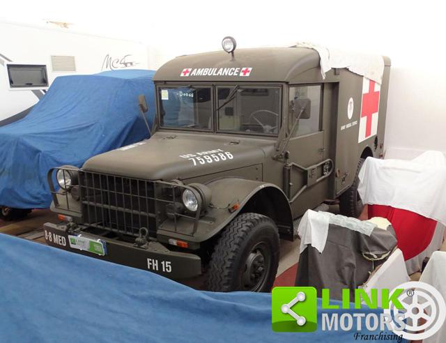 VEICOLO VISIONABILE SU APPUNTAMENTO PRESSO: VEHICLE VIEWABLE BY APPOINTMENT at: LINK MOTORS - CESENA, Via Emilia Ponente 1720 47522 Cesena (Forli-Cesena) Tel. 0547405671 Cell. 3515971998 Email: linkmotorscesena@gmail.com Web: https://www.linkmotors.it/filiale/Link-Motors-Cesena/id/55 LINK MOTORS CESENA propone DODGE M 43 AMBULANZA MILITARE DEL 1959 MAGNIFICA AMBULANZA MILITARE DEL 1959 IN PERFETTE CONDIZIONI, COMPLETAMENTE RESTAURATA ISCRITTA ASI TARGA ORO Ultimi lavori eseguiti a Dicembre 2022: Cambio olio Testata revisionata Guarnizione di testa nuova Valvole e guide valvole Rettificati collettori di scarico Innesti marmitta Pulizia carburatore Candele Freni nuovi (originali), 4 cilindretti nuovi Aggiunta pompa elettrica alimentazione Due batterie nuove a 24 volt Interni in Canvass FOTO EXTRA SU RICHIESTA veicolo da guidare con patente B La dotazione tecnica e gli accessori indicati nella presente scheda potrebbero non coincidere con l effettivo equipaggiamento del veicolo, a causa della non uniformità dei dati pubblicati dai diversi portali. Ci scusiamo per l inconveniente e vi invitiamo a verificare le caratteristiche dello specifico veicolo. Si declina ogni responsabilità per eventuali involontarie incongruenze, che non rappresentano in alcun modo un impegno contrattuale. Servizi offerti dall Agenzia Link Motors Cesena: - Finanziamento da 12 - 84 mesi. - GARANZIA guasti attivabile su richiesta 12 - 36 mesi. - Spedizioni veicoli nazionali ed estere. - Gestione Burocrazia fino al passaggio di proprietà . - NOVITA Vendita di veicoli KM ZERO. - Noleggio a lungo termine 12-60 mesi