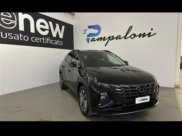 Altre opzioni: 5 Anni di Garanzia Km illimitati;Barre portatutto longitudinali;Caricatore wireless per smartphone;Cerchi in lega leggera da 18" con pneumatici 235/55 R18;Cluster SuperVision TFT LCD da 10.25";Comandi audio al volante;Freno di stazionamento elettrico;Hyundai Smart Sense+ Advanced;Kit Gonfiaggio Pneumatici;Luci diurne e di posizione a LED;Luci posteriori a LED;Maniglie e specchietti retrovisori in tinta con la carrozzeria;Presa ausiliaria 12V (plancia);Pulsante davviamento "StartButton" con Smart Key;Retrovisore interno elettrocromico;Sedile passeggero regolabile in altezza;Sedile posteriore abbattibile con modulo 40:20:40;Sedili rivestiti in tessuto;Sensore crepuscolare;Sensore pioggia;Servizi telematici Bluelink;Sistema di controllo della stabilità (E.S.P.);Sistema di controllo della velocità in discesa (D.B.C.);Sistema di frenata anti bloccaggio (A.B.S.);Sistema di gestione automatica dei fari abbaglianti (H.B.A.);Sistema di mantenimento al centro della corsia (L.F.A.);Sistema di riconoscimento dei limiti (I.S.L.A.);Sistema ISG "idle Stop&Go System";Specchietti retrovisori regolabili, ripegabili e riscaldabili elettricamente;Vetri posteriori oscurati;Volante e pomello del cambio rivestiti in pelle;Volante regolabile in altezza e profondità