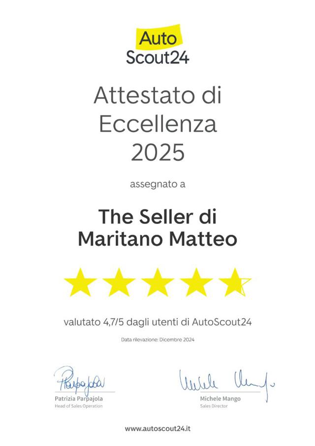 ? Formula S ? La Serenità firmata The Seller - Tu scegli l?auto. Al resto pensiamo noi. La soluzione completa per acquistare in totale tranquillità, con servizi inclusi e costi chiari. ? Cosa comprende Formula S Finanziamento personalizzato ? senza costi inattesi Assicurazione completa ? Furto, Incendio, Collisione, Eventi naturali, Kasko Garanzia estendibile ? sicurezza che dura nel tempo Referente unico ? gestione semplice e senza perdite di tempo ? Vantaggi dedicati ? Prezzo promo con Formula S ? Prezzo senza Formula S: 28.900 ? Con Formula S hai una proposta tutto incluso, trasparente e modulabile: paghi solo ciò che serve, nel modo più comodo per te. ? Contattaci ora per maggiori informazioni, disponibilità e per bloccare l?offerta. ?? Annuncio a titolo informativo e non vincolante. Le dotazioni possono variare rispetto a quelle effettive del veicolo.