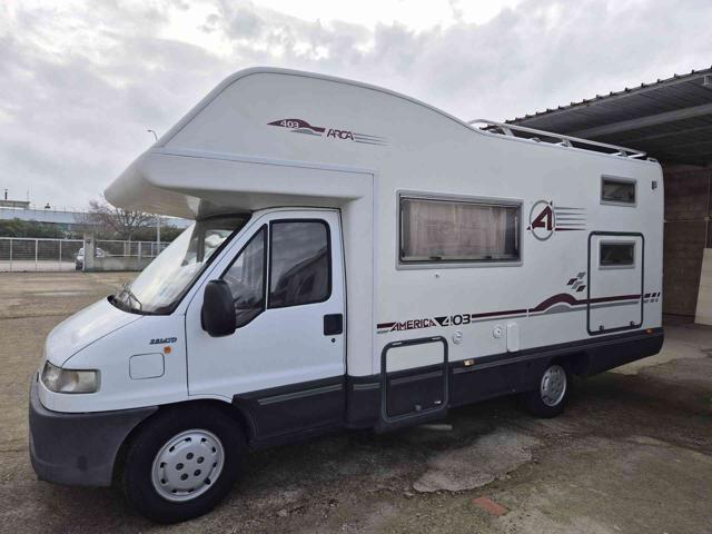 Bel mansardato Arca America 403, su meccanica Fiat Ducato 2.8 tdi , anno 2000, km 144000 circa.Alzacristalli elettrici chiusura centralizzata. Autoradio con lettore mp3.Cellula di ottima qualità e in ottime condizioni come nella migliore tradizione Arca.Sei posti letto, grande bagno con doccia separata da porta rigida,3 armadio, cucina 3 fuochi,scaldavivande, riscaldamento canalizzato,boiler acqua calda ad accensione elettronica,doppio serbatoio acqua potabile,pannello fotovoltaico,antenna tv ,rilevatore fughe gas, turbovent, tutto il camper fin dall origine ha una doppia coibentazione nelle zone dove sono disposti i letti.gavone supplementare laterale .frigo trivalente,oscuranti e zanzariere in tutte le aperture compresa la porta d ingresso portabici, portapacchi con scaletta posteriore,tendalino, luce esterna ecc.