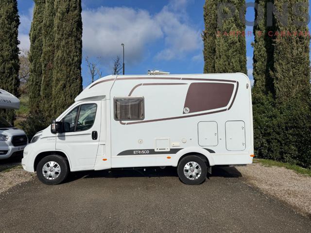 Compatto semintegrale Etrusco T5900DB su meccanica Fiat Ducato 2300cc 130cv. Il veicolo immatricolato nell'aprile 2018 misura soli 5,98m e ha percorso 89972km. La pianta seppure compatta resta piuttosto ariosa e dispone di una comoda e luminosa dinette, letto trasversale in coda e possibilità di trasformazione dinette in letto supplementare. Il bagno, collocato sul lato sx del veicolo offre la soluzione del vario in cui ruotando la parete è possibile ampliare l'ambiente doccia o quello toilette a seconda dell'esigenza. La cucina è sviluppata in senso lineare e composta da piano cottura a tre fuochi, lavello e frigo sottostante. Il veicolo dispone infine di un pratico garage nonostante le misure agili e compatte della pianta. Tra le dotazioni optional troviamo: Sky view frontale - Retrocamera - Traction + e Hill Holder - Radio - Porta TV - Cappa aspirante - Portabici - Veranda - Ruote da 16 - Scalino elettrico - Doccia esterna calda/fredda - Antenna tv - Pannello solare - Bombolone gas Prezzo del veicolo ?45.000 La Pons srl declina ogni responsabilità per eventuali involontarie incongruenze, che non rappresentano in alcun modo un impegno contrattuale. Pons Camper e Caravan in Liguria e Toscana, vi propone camper tra mansardati, semintegrali, furgonati, motorhome e van tra le migliori marche e usati garantiti. Laika Hymer Etrusco Carado Burstner Roller Team Adria Carthago Mobilvetta