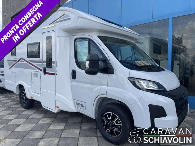 Letto basculante ? 1.000,00Letto supplementare in dinette ? 305,00Truma Combi 4000 Diesel ? 610,00PACK PRIVILEGE ? 1.500,00 (Paraurti verniciato in tinta, Fari fendinebbia, Porta a 2 punti XL con finestra e chiusura centralizzata, Radio con schermo da 6,8" Apple Car Play e Android auto, Comandi radio al volante, Retrocamera HD, Foderine cabina in tinta con la tapezzeria)PACK SPORT ? 1.000,00 (Cerchi in lega 16" bicolore, Volante e pomello cambio in pelle e Inserti al volante in alluminio)DI SERIE sui SIENA STANDARD : Telaio da 35Qli. 140cv, Climatizzatore cabina, Sospensioni rinforzate bilama posteriori, Pneumatic M+S 4 Stagioni,Airbag guidatore e passeggero, Esp, Traction Plus, Hill holder, Hill descent, Start & Stop, Cruise control, Predisposizione radio Dab, Specchietti retrovisori elettrici e riscaldati, Cambio manuale 6 marce, Serbatoio acque grigie riscaldato, Comando Truma CP Plus, Luci posteriori a Led, Attacchi isofix (non disponibili con dinette face to face) Cerchi da 15 in acciaio, Porta cellula XL con un punto di chiusura, Oscurante isolante interno cabina, Maxi oblò sky View (solo profilati), Predisposizione pannello solare, Predisposizione antenna tv digitale/sat, Zanzariera porta cellula, Luce esterna a led, Tapezzeria Giglio e Pianosa, Letto elettrico anteriose (di serie solo 350e 396)PLUS = Il Siena 330 è ideale per chi desidera un camper agile completo e con una lunghezza di 5,99 mt. offre un letto matrimoniale posteriore una dinette conviviale e un bagno con doccia separatae un frigorifero grande, la cucina laterale è ben attrezzata, gli spazi interni garantiscono comfort e abitabilità in dimensioni contenute. Perfetto per due persone o piccole famiglie. CAMPER SEMINTEGRALE COMPATTO IN VETRORESINA CON LETTO BASCULANTE E COMODO LETTO POSTERIORE BASSO, FRIGO GRANDE E GRANDE BAGNO, TUTTO IN SOLI 599 cm.DI SERIE ATTACCHI ISOFIX SU SEDUTE DINETTENOVITA' 2026IN PRONTA CONSEGNA