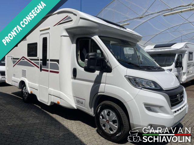 Letto basculante elettrico anteriore ? 1.000,00Truma Combi 4000 Diesel ? 610,00DI SERIE NELLA VERSIONE PREMIERE EDITION: Cambio automatico 8 marce, Radio con schermo da 9'' (AppleCarPlay e AndroidAuto), Comandi radio al volante, Oscuranti plissettati in cabina, Tapezzeria ELBA, Coperchio lavello cucina, Duocontrol, Tappeto moquette cellula, tappeto moquette cabina).PACK PRIVILEGE (Paraurti verniciato in tinta, Fari fendinebbia, Porta a 2 punti XL con finestra e chiusura centralizzata, Radio con schermo da 6,8" Apple Car Play e Android auto, Comandi radio al volante, Retrocamera HD, Foderine cabina in tinta con la tapezzeria)PACK SPORT (Cerchi in lega 16" bicolore, Volante e pomello cambio in pelle e Inserti al volante in alluminio) DI SERIE sui SIENA STANDARD : Telaio da 35Qli. 140cv, Climatizzatore cabina, Sospensioni rinforzate bilama posteriori, Pneumatic M+S 4 Stagioni,Airbag guidatore e passeggero, Esp, Traction Plus, Hill holder, Hill descent, Start & Stop, Cruise control, Predisposizione radio Dab, Specchietti retrovisori elettrici e riscaldati, Cambio manuale 6 marce, Serbatoio acque grigie riscaldato, Comando Truma CP Plus, Luci posteriori a Led, Attacchi isofix (non disponibili con dinette face to face) Cerchi da 15 in acciaio, Porta cellula XL con un punto di chiusura, Oscurante isolante interno cabina, Maxi oblò sky View (solo profilati), Predisposizione pannello solare, Predisposizione antenna tv digitale/sat, Zanzariera porta cellula, Luce esterna a led, Tapezzeria Giglio e Pianosa, Letto elettrico anteriose (di serie solo 350e 396)PLUS = Semintegrale ideale per chi desidera un camper versatile con i suoi 6,99 metri di lunghezza, letti posteriori gemelli con materasso in dotazione per essere uniti, bagno con box doccia, zona zona giorno luminosa e accogliente. La dinette si trasforma in un ulteriore posto letto e sopra il soggiorno c'è un letto matrimoniale discendente elettrico rendendo questo modello perfetto per coppie o piccoli nuclei familiari. L'ampio garage posteriore, accessibile da entrambi i lati, consente di portare tutto il necessario per ogni avventura. ? PLUS = Semintegrale ideale per chi desidera un camper versatile con i suoi 6,99 metri di lunghezza, letti posteriori gemelli con materasso in dotazione per essere uniti, bagno con box doccia, zona zona giorno luminosa e accogliente. La dinette si trasforma in un ulteriore posto letto e sopra il soggiorno c'è un letto matrimoniale discendente elettrico rendendo questo modello perfetto per coppie o piccoli nuclei familiari. L'ampio garage posteriore, accessibile da entrambi i lati, consente di portare tutto il necessario per ogni avventura. DI SERIE ATTACCHI ISOFIX SU SEDUTE DINETTE NOVITA' 2026 IN PRONTA CONSEGNA