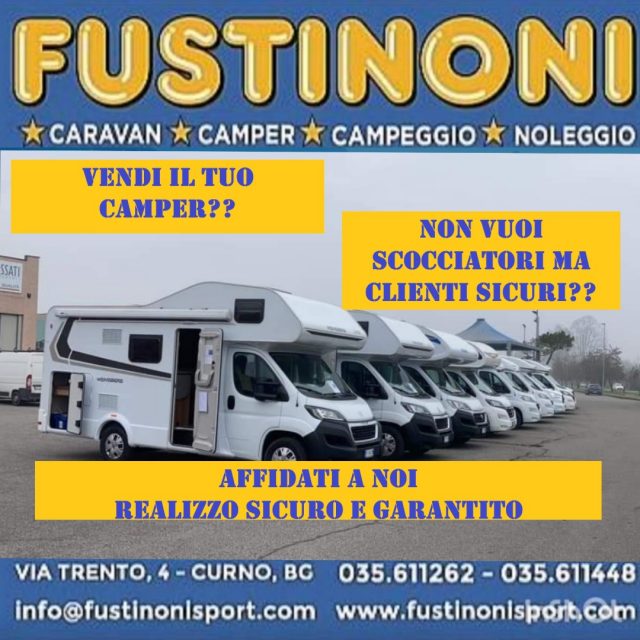 RICERCHIAMO CAMPER USATI A CURNO BERGAMO - FUSTINONI CARAVAN & CAMPER CONTO VENDITA CAMPER SENZA RISCHI E CON GARANZIE PER L'ACQUIRENTE VALUTIAMO ANCHE RITIRO DIRETTO E PERMUTE SU NUOVO RICERCHIAMO per clientela interessata: CAMPER USATI versioni FURGONATO ,VAN o SEMINTEGRALE MANSARDATI SOLO PARTIRE DAL 2006, ( non valutiamo mezzi piu' datati) VALUTAZIONI SERIE E GARANTITE REALIZZO IMMEDIATO o concordato alla rivendita CI OCCUPIAMO NOI DI TROVARE IL CLIENTE GIUSTO PER IL TUO CAMPER USATO EVITA SCOCCIATORI E PERDITEMPO con la sicurezza di riscossione garantita FINANZIAMENTI PERSONALIZZATI per l'acquirente RITIRO ANCHE PRESSO TUO DEPOSITO PER INFO , APPUNTAMENTI contattataci via mail : info@fustinonisport.com CHIAMACI da lunedi' a venerdi' allo 035/611262 oppure via whatsapp 335/8160517 Indicaci con maggiori dettagli, Marca, modello , anno km accessori STATO D'USO e sopratutto QUANTO INTENDI REALIZZARE al netto delle riparazioni eventui, passaggio proprieta' e nostra provvigione rivendita ! #CAMPER #USATI Seminuovi e #OCCASIONI da FUSTINONI SPORT CURNO - BERGAMO Concessionaria caravan e camper :Restate connessi su www.fustinonisport.com Da noi trovi le Migliori Marche : KNAUS , WEINSBERG, VW, Volkswagen, Van, CHALLENGER , HYMER , LAIKA, BURSTNER, RIMOR ,ELNAGH , CHAUSSON , CI , MOBILVETTA e tante altre Fustinoni Sport a Curno Bergamo, VENDITA CARAVAN & CAMPER A disposizione fornitissimo MARKET- RICAMBI ed OFFICINA CONTATTACI allo 3358160517 o 035611262