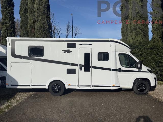 Laika Kosmo L 412 DS nuovo da immatricolare ? 4 posti, letto centrale + basculante, Fiat Ducato 140 CV. Lunghezza 7,40 Layout con letto matrimoniale centrale posteriore e letto basculante matrimoniale anteriore, grande living ?face to face?, bagno con doccia separata e allestimento interno impreziosito da Pacchetto One, tappezzeria Siena e cuscini Liguria. All?ingresso trovi un ampio soggiorno con doppia seduta contrapposta e tavolo centrale regolabile e ribaltabile: un vero salotto, luminosissimo grazie al grande skyroof e alle finestre laterali e a una completa illuminazione full Led. Sedili cabina girevoli e arredi moderni nei toni grigio/tortora, con la tappezzeria Siena e i cuscini Liguria che rendono l?ambiente caldo e accogliente. La cucina ad angolo è compatta ma molto funzionale, con piano cottura, lavello inox, grandi cassetti e pensili capienti. In coda trovi una vera camera matrimoniale con letto centrale, armadi e pensili, mentre il letto basculante elettrico sopra la dinette offre altri due posti letto pronti in pochi secondi. Il blocco toilette è elegante e pratico, con wc, lavabo e numerosi vani portaoggetti; di fronte la doccia indipendente con colonna e pedana in legno garantisce il comfort di casa anche in viaggio. All?esterno, il camper offre un grande garage posteriore ideale per biciclette o attrezzatura da campeggio. Dotazioni principali: Meccanica Fiat Ducato 2.2 140 CV, patente B Omologato 4 posti viaggio / 4 posti letto Pacchetto One Laika che comprende serbatoio di recupero coibentato, letto basculante, oscuranti remis, cappa aspirante, predisposizione pannelli solari, predisposizione telecamera, moquette cabina guida, pareti camera da letto rivestiti in eco pelle, porta cellula Premium XL con chiusura centralizzata, finestra e oscurante, capolino con skyview integrato, fodere cabine coordinate con il soggiorno Tappezzeria Siena con cuscini Liguria coordinati Illuminazione interna full LED e skyroof panoramico Ampi gavoni e garage posteriore Veicolo nuovo, in pronta consegna, ideale per la coppia esigente anche con 1?2 figli che cerca un Laika moderno, elegante e già pronto per partire. Prezzo di listino comprensivo di optional e messa su strada ? 88.899 Prezzo in PROMO chiavi in mano senza ritiro dell?usato ? 79.000 Pons Camper e Caravan in Liguria e Toscana, vi propone camper tra mansardati, semintegrali, furgonati, motorhome e van tra le migliori marche e usati garantiti. Laika Hymer Etrusco Carado Burstner Roller Team Adria Carthago Mobilvetta
