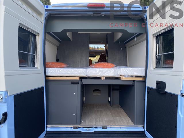 Nuovissimo campervan Kosmo supremo 60 nella versione "Azzurro Capri" su telaio Fiat Ducato 180 CV con cambio automatico. Nella sua lunghezza di soli 5,99 mt ospita un arredamento elegante e distintivo grazie alla nuova colorazione della tappezzeria. Dinette con tavolo ampliabile e sedili guida girevoli, cucina compact con piano cottura a due fuochi, frigo a colonna e ulteriore piano d'appoggio dato dalla ribaltina laterale. Bagno vario grazie alla parete traslabile con finestra e doccia sfruttabile dall'esterno. Nella parte posteriore un letto matrimoniale trasversale con pensili a giro sui 3 lati; Nella parte sottostante il vano per riporre due bombole del gas e non manca lo spazio per lo stivaggio del materiale. Accessori inclusi: Autotelaio Fiat Ducato Heavy 3.500 - Motore 180 CV con cambio automatico - Vernice "Azzurro Capri" - Pack Chassis (freno a mano elettrico, TPMS, clima cabina automatico, fari full-led) - Pack Safety (Controllo autonomo della frenata di emergenza, Cruise control adattivo) - Skyview - Sistema multimedia con autoradio 9" e retrocamera Prezzo del veicolo chiavi in mano: ? 80.787 La Pons srl declina ogni responsabilità per eventuali involontarie incongruenze, che non rappresentano in alcun modo un impegno contrattuale.