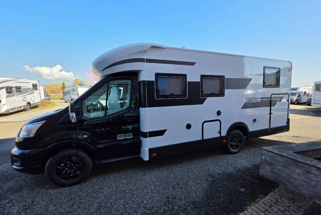 Semintegrale con letti singoli gemelli e sottostante gavone garage, bagno con doccia separata, cucina con frigo a compressore 150 l, semidinette con divanetto laterale e con sedili anteriori girevoli, letto basculante matrimoniale.