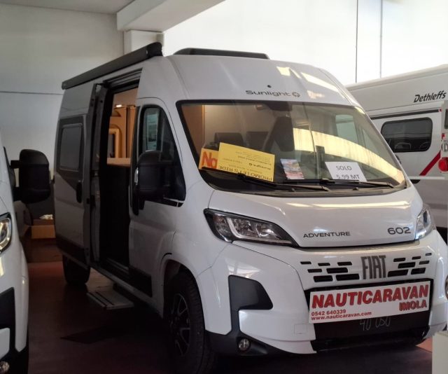 PRONTA CONSEGNA A IMOLA -- CAMPER FURGONATO SUNLIGHT DI 5,99 METRI VERSIONE LETTI GEMELLI LONGITUDINALI. COSI' CONFIGURATO: CLIFF 602 ADVENTURE...57,190. COLORE ESTERNO BIANCO. ADVENTURE COMPRENDE DI SERIE: Fiat Ducato 3.500 kg | 2.2 Multijet | 103 kW | 140 CV Euro 6 | cambio manuale 6 marce Bianco Fiat Adesivi Adventure Tappezzeria Adventure Veranda (nero) Pacchetto base Pacchetto paraurti verniciato Pacchetto cerchi in lega bicolor IMMATRICOLAZIONE TRASPORTO MESSA IN STRADA....2,000. RUOTA DI SCORTA CON STAFFA E MARTINETTO 315. FINESTRE A FILO 685. SERBATOIO ACQUE GRIGIE ISOLATO E RISCALDATO 620. POSSIBILITA' TRASFORMAZIONE DINETTE IN LETTO 360. PEDANA DOCCIA IN LEGNO 90. PREZZO DI LISTINO VEICOLO ESPOSTO EURO 61,360.00 QUESTO ANNUNCIO NON HA VALORE CONTRATTUALE, LA DESCRIZIONE PUO' CONTENERE DEGLI ERRORI INVOLONTARI SI INVITA A VISIONARE DI PERSONA IL VEICOLO E VERIFICARNE LA RISPETTIVA DOTAZIONE. LE IMMAGINI UTILIZZATE SONO DI REPERTORIO.