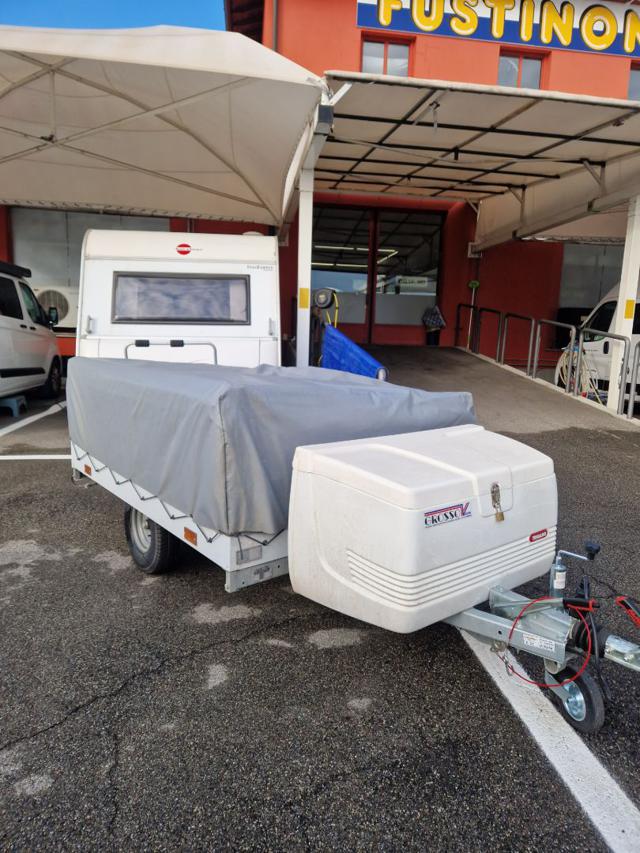 TRIGANO CARRELLO TENDA COMPLETO DI VERANDA CAMPLAIR "S" AF USATO 2022 Unico proprietario Montaggio rapido, due grandi camere , doppia veranda antistante POSTI LETTO 2+2 PESO PIENO CARICO KG 650 CARRELLO TENDA CAMPLAIR ?S? AF SENZA BLOCCO CUCINA Camplair di Trigano. Frontalino completamente staccabile in due parti. 3 cinghie di fissaggio sul davanti. Tende alle finestre. Scatola di immagazzinaggio Dati tecnici: Peso: 345 kg a vuoto Freno meccanico Ruote: 500×10 Dimensioni di ingombro totali (LxlxH) : 320x140x110 Superficie totale17,55 mq Zona giorno 8,97 m² Dimensione della stanza1,90 x 1,40 m Sospensioni: a ruote indipendenti Nel prezzo sono compresi: Ruota di scorta Baule Anteriore PREZZO LISTINO MODELLO usato COME ESPOSTO ? 4500 +p/p (valore a nuovo circa 7500? su strada ) Contattaci in sede per maggiori info, GARANZIA1 ANNI su usato SCHEDA Salvo Errori ed omissioni FUSTINONI SPORT , via Trento 2/4/6 Curno Bergamo sito: www.fustinonisport.com VENDITA CARAVAN & CAMPER A disposizione fornitissimo MARKET- RICAMBI ed OFFICINA CONTATTACI allo 3358160517 o 035611262