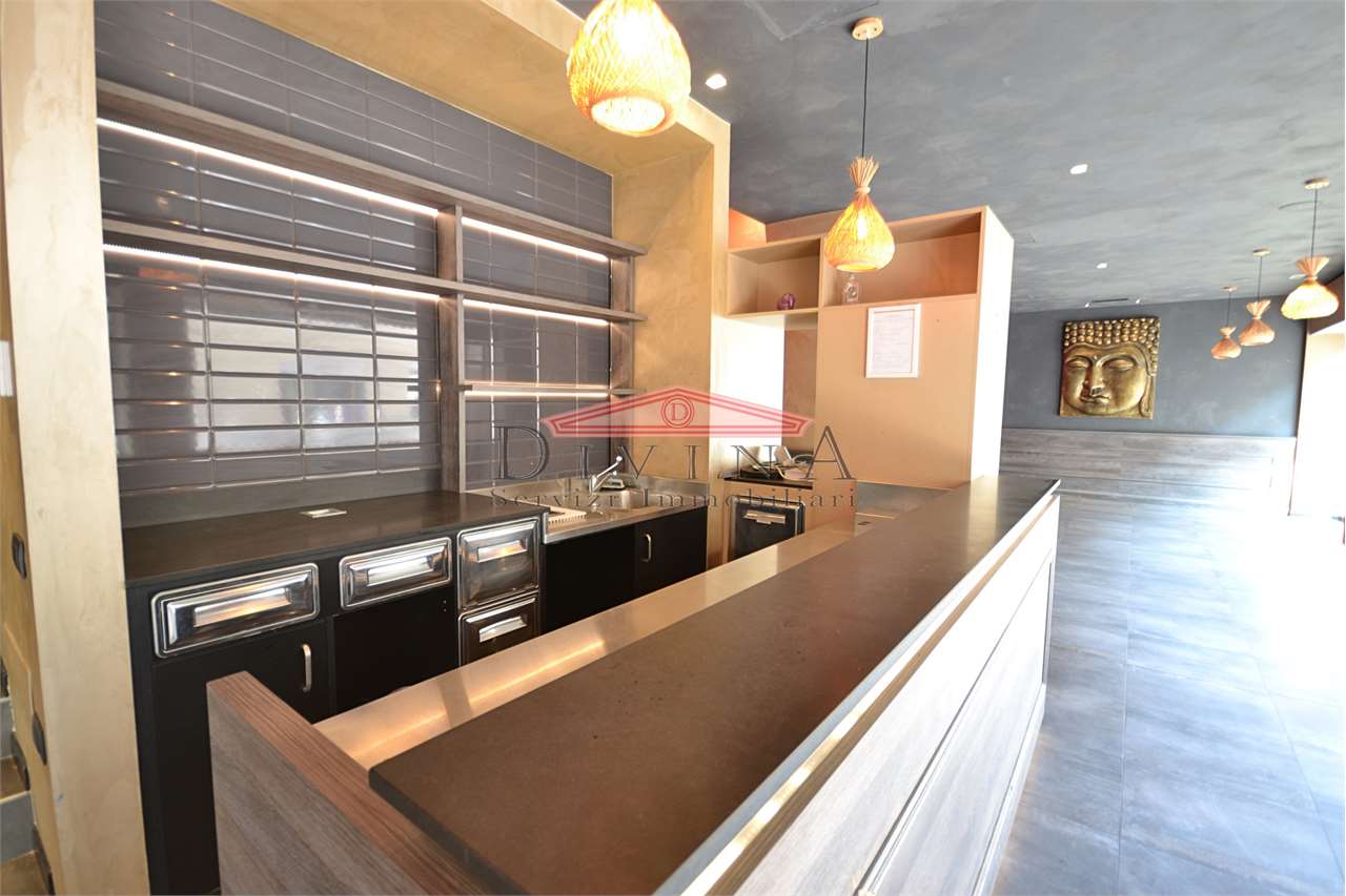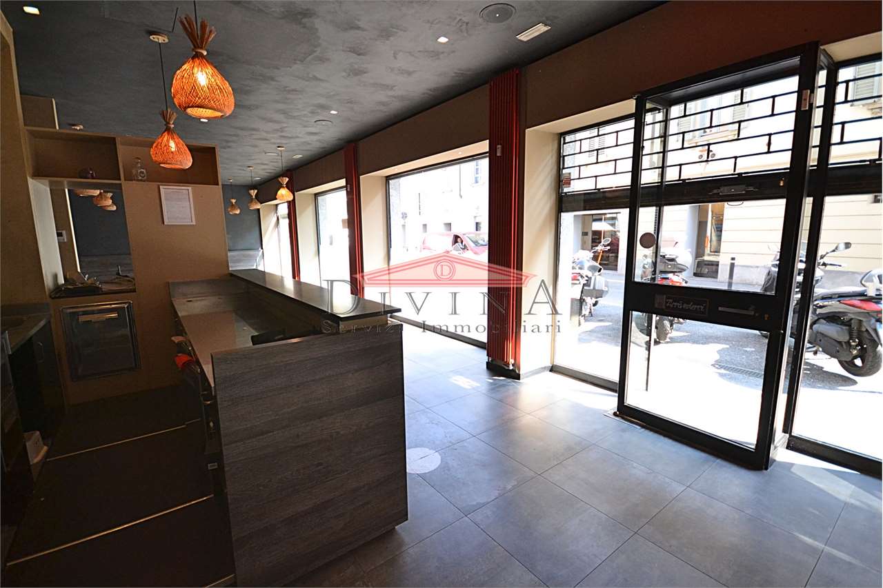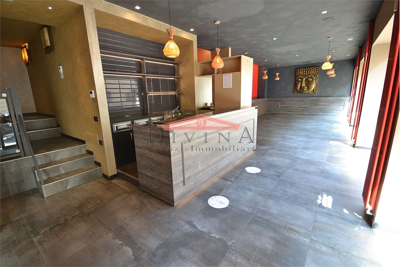Monza quartiere San Biagio Nelle immediate vicinanze del centro storico, proponiamo ampio locale commerciale con cinque vetrine su strada ad intenso passaggio pedonale e veicolare. L'immobile è disposto su due livelli collegati da scala interna: piano terra mq 140 luminosissimo open space con vetrine, ampia cucina dotata di canna fumaria con accesso al piano interrato e un comodo mezzanino provvisto di bagni; piano interrato mq 38 capiente area deposito e bagno, con uscita di sicurezza all'area esterna. Completano la proprietà un'area esterna autorizzata per l'occupazione di suolo pubblico, una cantina e un posto auto scoperto all'interno del cortile condominiale. Immobile precedentemente utilizzato come ristorante che si adatta a svariate attività commerciali con una straordinaria visibilità. CLASSE ENERGETICA: D 544,47 kWh/m3 a