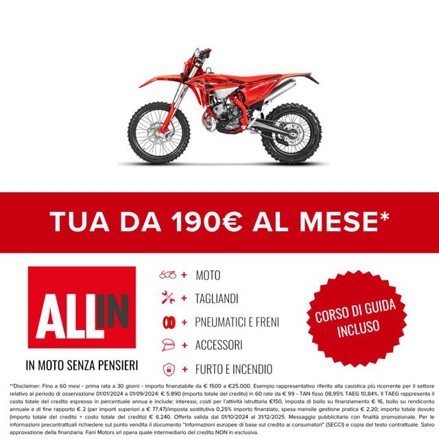 Moto disponibile in pronta consegna Finanziamento totale disponibile per rendere l?acquisto ancora più semplice. Consegna in tutta Italia, isole comprese. Eventuali accessori non inclusi nel prezzo indicato. Valutiamo la tua permuta! Inviaci foto e descrizione della tua moto usata per ricevere il miglior preventivo personalizzato. 50 anni di storia: Fani Motors, concessionaria ufficiale di 25 brand, dal 1975 al servizio della passione per le due ruote.