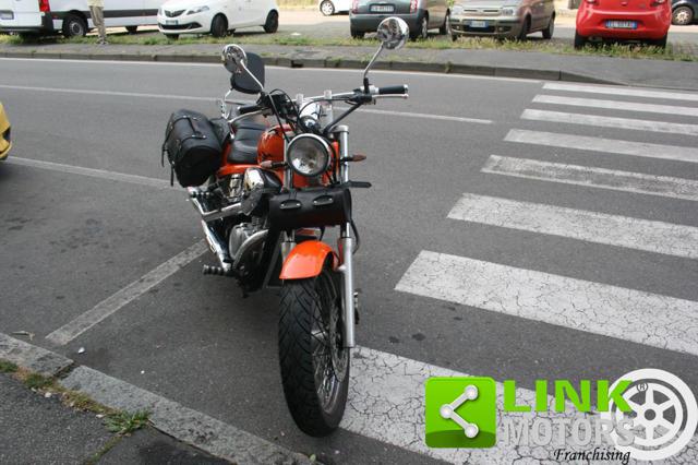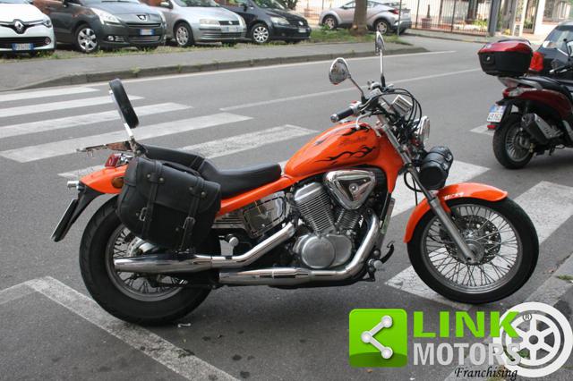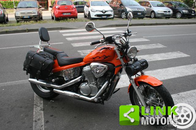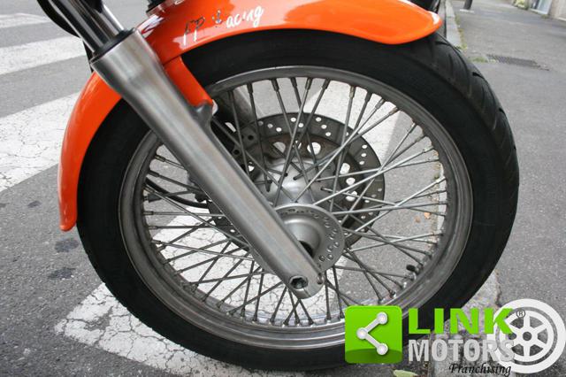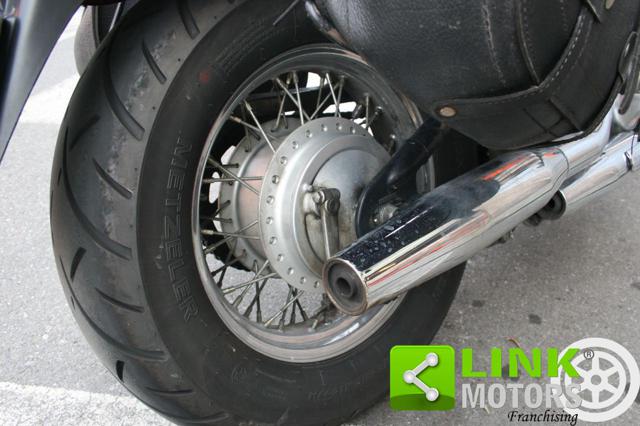 HONDA VT 600C SHADOW IMMATRICOLAZIONE: 30/03/1998 KM: 47800 CILINDRATA: 583 POTENZA: 28KW 38CV CAMBIO: MANUALE CARBURANTE: BENZINA EURO 1 SCADENZA BOLLO: 31/03/2026 SCADENZA REVISIONE: 06/2026 REGOLARMENTE TAGLIANDATA ULTIMO CAMBIO OLIO EFFETTUATO A MAGGIO 2025 PNEUMATICI AL 90% KIT DISTRIBUZIONE, PIGNONE E CORONA SOSTITUITO A LUGLIO 2024 EFFETTUATO TRATTAMENTO TANCHERITE AL SERBATOIO RIVESTIMENTO NUOVO DELLA SELLERIA IL VEICOLO E' DOTATO DI BORSE LATERALI, PORTAPACCHI POSTERIORE, SEDILE POSTERIORE CON SCHIENALE E BORSA PORTATTREZZI ANTERIORE IL VEICOLO SI PRESENTA IN OTTIME CONDIZIONI MECCANICHE VEICOLO VISIONABILE IN FILIALE SU APPUNTAMENTO Questa moto, grazie al suo design e soprattutto al prezzo d'acquisto particolarmente basso, si fece strada nel settore delle motociclette custom, fino ad allora rappresentato quasi esclusivamente della statunitense Harley Davidson. Questo modello, meno costoso della Harley-Davidson Sportster (quasi la metà del costo d'acquisto) ha permesso l'apertura del genere custom ad un maggior numero di utilizzatori finali. Vista la categoria di destinazione la VT 600 era equipaggiata da un motore bicilindrico a V da 583 cm³, raffreddato a liquido e alimentato a carburatore che erogava 39 CV di potenza. Comandato attraverso un cambio a 4 o 5 rapporti in base all'anno di produzione aveva una trasmissione finale a catena. Anche l'impianto sospensivo e quello frenante avevano caratteristiche standard per un tipo di moto con indole poco sportiva: all'anteriore era presente una forcella telescopica con un'inclinazione pronunciata e un freno a disco singolo da 296 mm, posteriormente un classico monoammortizzatore e un freno a tamburo da 160 mm. La VT 600C Shadow uscì dai listini europei con l'avvento della ben più costosa Black Widow 750, moto dotata di sistema di iniezione elettronica (e quindi omologato Euro 1) in grado di rispettare le nuove norme anti-inquinamento. La definitiva fine della produzione avviene nel 2008.