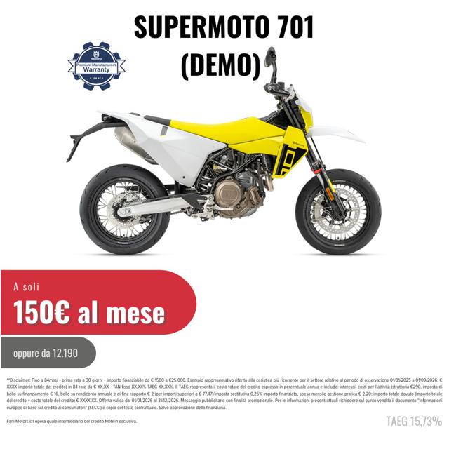 La nostra moto aziendale è pronta per la tua strada preferita. Con consegna in tutta Italia, isole comprese. Le foto sono tutte originali, ma se ci sono accessori sono da considerarsi a parte. Il prezzo è totalmente finanziabile. Tieni presente che, essendo una moto aziendale, è esclusa da eventuali promozioni ufficial ed eventuali accei. Se hai una moto usata, inviaci le foto e la descrizione per il nostro miglior preventivo. Trovaci a Firenze, Via Empoli 31c, dal 1975 al servizio della passione a due ruote.