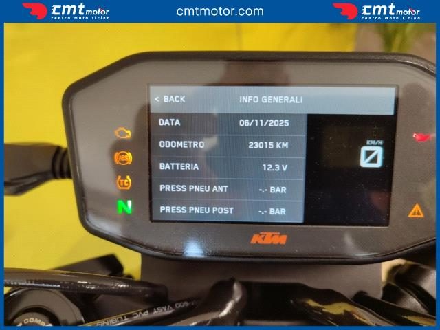 Codice: GED-GEM250302 Marca: KTM Modello: 890 Duke Prezzo: EURO 8.960 Categoria: Naked Anno: 2022 Km: 23015 Kw: 89 CV: 121 Colore: Arancione Cilindrata: 900 Stato: Ottimo Accessori/Note: KTM 890 DUKE R in OTTIME condizione, UNICOPROPREITARIO, ABS, Quickshifter+, modalità di guida, Cruise Control, MSR, scarico AKRAPOVIC omologato, in dotazione tutti gli accessori ORIGINALI, sistema pressione gomme, tamponi protezione, portatarga, TAGLIANDATA, 12 mesi di GARANZIA (est a 36), FINANZIABILE Servizi Offerti: * Controllo di Pre-consegna * Garanzia 12 mesi estendibile a 24 (moto max 20 anni) * Finanziamenti personalizzati per importo e durata. * * La dotazione reale può differenziarsi dalla dotazione pubblicata nell?annuncio. **************************************** Moto visibile presso: CMTmotor di GENOVA (GE) Via Orsini 58R Tel.: +39 3791453236 E-Mail: genova.orsini@cmtmotor.com ****************************************
