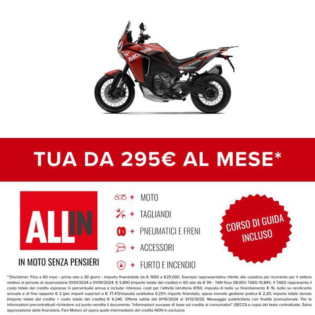 Moto disponibile in pronta consegna Finanziamento totale disponibile per rendere l?acquisto ancora più semplice. Consegna in tutta Italia, isole comprese. Eventuali accessori non inclusi nel prezzo indicato. Valutiamo la tua permuta! Inviaci foto e descrizione della tua moto usata per ricevere il miglior preventivo personalizzato. 50 anni di storia: Fani Motors, concessionaria ufficiale di 25 brand, dal 1975 al servizio della passione per le due ruote.