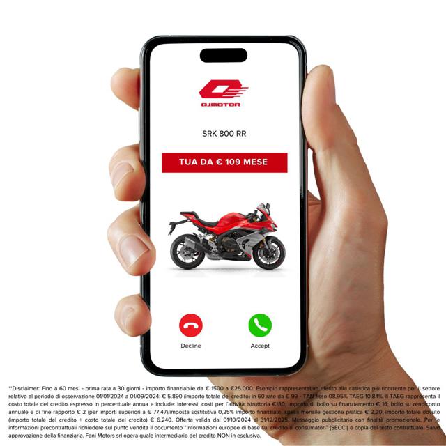 Moto Nuova ( possibilità di permuta usato come anticipo ) disponibile in tulle le colorazioni - vedi listino costruttore Esempio informativo ( salvo approvazione finanziaria ) Anticipo ? 3750 + 109x36 + 3333 ? riscatto Consegniamo in tutta Italia isole comprese! Per maggiori info contatta un nostro consulente! Disclaimer: L'annuncio indica il listino di partenza tra le colorazioni disponibili, salvo promo e/o altro incentivo in corso ( f.c.) Le rate mensili potrebbero variare in base alle richieste del singolo cliente. Formula ALL-IN = Anticipo + 12/24/36/48 rate + riscatto ( Può includere - Accessori/Furto/Incendio/Tagliandi/Gomme/Freni/Estensione garanzia ) Eventuali accessori o altro sono da considerarsi inclusi/esclusi come da indicazione listino costruttore.