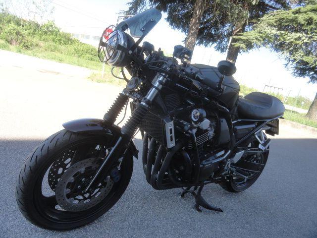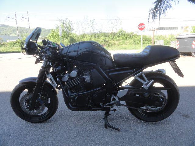TRATTASI DI YAMAHA FZS 600 FAZER MODIFICATA IN CAFE' RACER - SCARICO SHARK - COPRI SERBATOIO IN PELLE RICAMATO - VERNICIATURA NERA MICALIZZATA CON RIFLESSI VIOLA AL SOLE - PERIMETRALI PARA MOTORE RIZOMA - MANOPOLE RIZOMA - SPECCHI ESTERNI - FORCELLONE NERO (più anche l'originale grigio) - FRECCE + FARO ANTERIORE + FARETTE SUPPLEMENTARI A LED - SELLA ARTIGIANALE DA DITTA SPECIALIZZATA - SEMI MANUBRI REGOLABILI E LEVE REGOLABILI - CONTA Km DIGITALE - PORTA TEL. CON DOPPIA PRESA USB STAGNA - BATTERIA NUOVA - MOTO DA VETRINA -