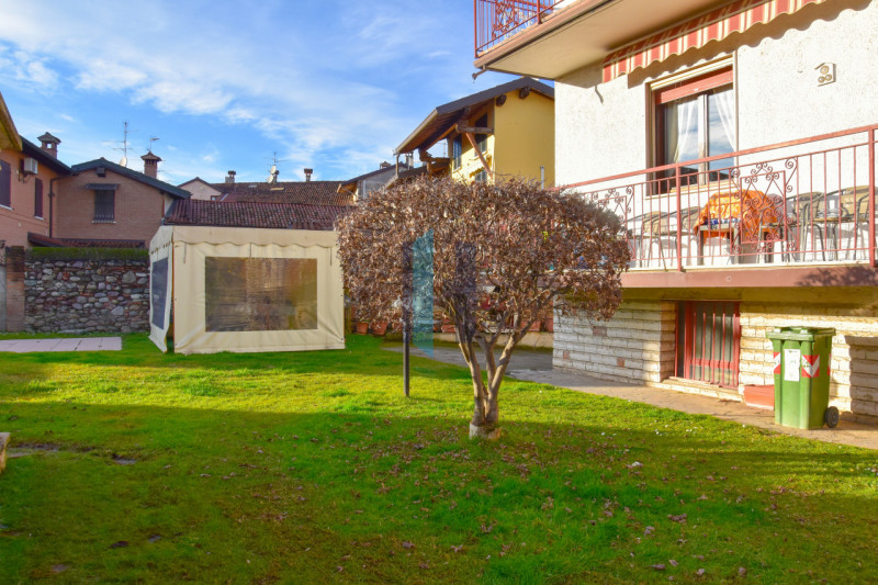 Porzione di bifamiliare al piano terra, libera su quattro lati e circondata da un ampio giardino privato di circa 300 mq. L’abitazione si trova in strada chiusa, garantendo tranquillità e privacy pur essendo vicina al centro del paese e a tutti i principali servizi. L’immobile offre spazi generosi per una superficie complessiva di circa 150 mq ed è stato oggetto di parziale ristrutturazione alla fine degli anni ’90, la soluzione ideale per famiglie che desiderano ambienti comodi sia all’interno che all’esterno. La zona giorno comprende un’accogliente cucina abitabile separata dalla spaziosa sala living, il lungo corridoio conduce alle due camere la matrimoniale con bagno padronale privato e doppia servita dal secondo bagno principale. Completano la proprietà numerose pertinenze funzionali come l’ampio portico coperto adatto anche come ricovero auto, box doppio capace di ospitare due utilitarie, cantina e tavernetta caratteristica dotata di camino perfetto per serate conviviali o relax, oltre alla pratica stufa a pellet integrativa nel riscaldamento domestico. Il grande balcone vivibile regala scorci sul verde circostante mentre il giardino piantumato e con impianto di irrigazione permette momenti all’aperto tutto l’anno grazie anche alla presenza della struttura gazebo removibile. La posizione strategica consente facile accesso ai collegamenti stradali verso il centro ma mantiene il fascino tipico dei quartieri immersi tra villette indipendenti e contesti familiari sicuri. --- annuncio pubblicato con GESTIONALEIMMOBILIARE.it