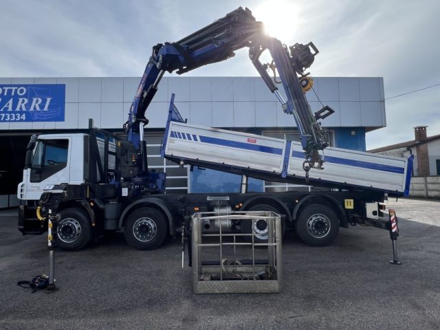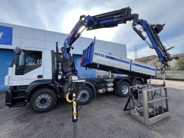 Autocarro 4 assi 320ptt, allestito con cassone ribaltabile trilaterale da 6,20x2,55m, portata utile 14500kg, gru PM serie 35.5 a 6 sfili idraulici + jib a 3 sfili idraulici, verricello, 4 stabilizzatori, radiocomando, cestello biposto omologato PLE, cambio ZF manuale, retarder, rimorchiabile, normativa euro 5. N.B. Si fa presente che la descrizione del veicolo è da considerarsi indicativa e potrebbe contenere errori o imprecisioni. Vi invitiamo pertanto a contattarci per verificare l'esatta corrispondenza dei dati.