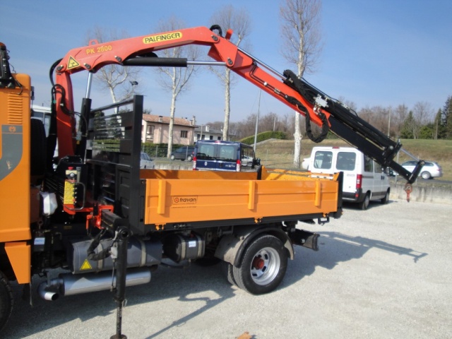 Macchina operatrice 60 q.li complessivi allestita con ribaltabile trilaterale; gru Palfingher 3SI; piastra porta lame neve anteriore; impianto idraulico anteriore e posteriore. Per qualsiasi ulteriore informazione contattateci direttamente.