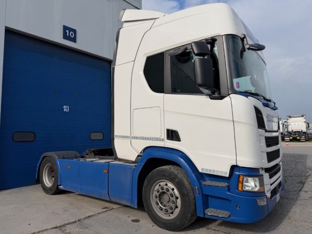 SCANIA 450CV CABINA R TETTO ALTO CERCHI IN LEGA CARENATURE TRA IL PASSO + SPOILER PNEUMATICI POST. 315/70 R22.5 ANT. 385/55 R 22.5 CLIMATIZZATORE DA FERMO DOPPIA BRANDINA FRIGORIFERO IN CABINA PER INFORMAZIONI LUCA 393 8401142 ABRAMO 391 7368521