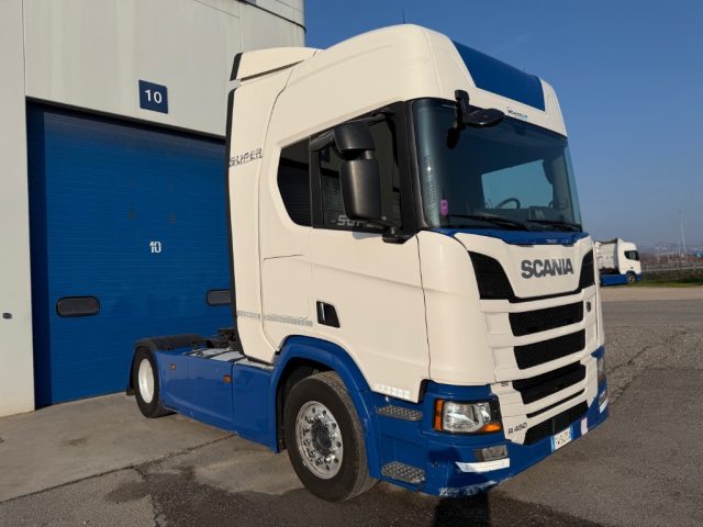 SCANIA 450CV CABINA R TETTO ALTO CERCHI IN LEGA CARENATURE TRA IL PASSO + SPOILER PNEUMATICI POST. 315/70 R22.5 ANT. 385/55 R 22.5 CLIMATIZZATORE DA FERMO DOPPIA BRANDINA FRIGORIFERO IN CABINA PER INFORMAZIONI LUCA 393 8401142 ABRAMO 391 7368521