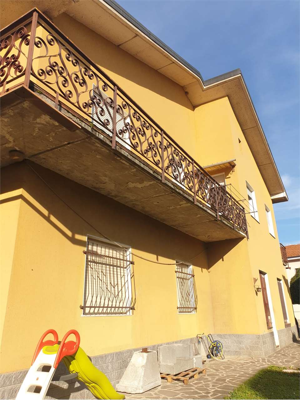 in zona centrale, proponiamo grande casa indipendente su due piani. Al piano terra appartamento da riattare, composto da: soggiorno, cucina, due camere e bagno, ripostiglio. Attraverso una comoda scala interna si accede all'appartamento posto al piano primo, cosi composto: grande soggiorno di 35mq con camino,disimpegno, cucina abitabile, tre grandi camere , bagno. Un terrazzo ed un grande balcone. Con una scala in legno a chiocciola si sale nel sottotetto di dimensioni come l'appartamento sopra descritto. Ampio box doppio, e cantina. CLASSE ENERGETICA: G