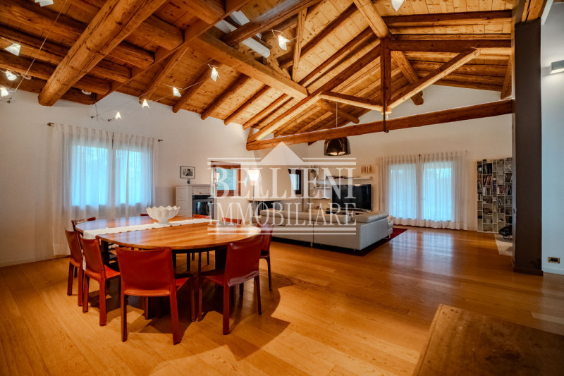 ZONA VICENZA EST – In una posizione riservata e immersa nel verde, proponiamo in vendita un’esclusiva villa singola di circa 600 mq, inserita in uno scenografico lotto privato di ben 10.000 mq che garantisce privacy assoluta e tranquillità. L’abitazione si sviluppa prevalentemente su un unico livello ed è caratterizzata da ambienti ampi, luminosi e finiture ricercate: travatura a vista ovunque, doppia altezza nella zona giorno, pavimenti in parquet pregiato alternati al marmo e dettagli artigianali per serramenti interni ed esterni in legno con vetrocamera. L’ingresso padronale introduce ad un salone spettacolare dotato di camino moderno e grandi vetrate affacciate sul giardino; seguono la sala da pranzo elegante e la cucina abitabile con isola centrale ideale per accogliere amici o famiglia. La zona giorno dispone inoltre di due spaziosi portici aperti perfetti come living outdoor nelle stagioni miti. La zona notte comprende una suite matrimoniale completa di cabina armadio privata e bagno esclusivo finestrato, altre due camere spaziose, ripostiglio dedicato, ulteriore servizio raffinato e una lavanderia. Al piano superiore troviamo un grande soppalco multiuso open space che conduce ad altre due camere aggiuntive ideali anche come studio/hobby room/area relax più soffitta/ripostigli supplementari. Completa questa residenza unica un mini appartamento indipendente al piano terra perfetto sia per ospiti che personale domestico oltre all’ampio garage doppio collegato internamente alla casa. Dotazioni tecniche d’eccellenza: impianto climatizzazione caldo/freddo, sistema antifurto evoluto. Vivere qui significa godere della quiete del contesto rurale vicentino ma restando comodissimi ai servizi principali grazie alla strategica vicinanza alle vie rapide verso Vicenza centro città (pochi minuti) nonché agli snodi autostradali A4/A31. Soluzione rara dal fascino senza tempo dove comfort contemporaneo incontra materiali autentici! Cl. En. n.d. Rif. V023 Bellieni Immobiliare S.R.L Unipersonale Piazza G. Matteotti n°20 Vicenza Tel: 0444525262 richieste@bellieni.com www.bellieni.com --- annuncio pubblicato con GESTIONALEIMMOBILIARE.it