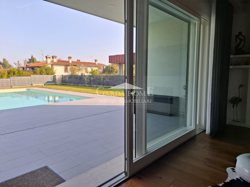 Proponiamo in vendita una splendida villa moderna situata nel cuore di Manerba del Garda, a pochi passi dalla romantica spiaggetta di Pisenze e comodamente raggiungibile anche il Porto Torchio. La posizione privilegiata regala tranquillità e privacy, immersa nella natura rigogliosa che circonda la rinomata Rocca. La proprietà si sviluppa su una superficie di circa 270 mq ed è caratterizzata da spazi ampi e luminosi grazie alle grandi vetrate scorrevoli che collegano l’elegante zona living al portico esterno ideale per momenti conviviali all’aperto. L’ampia area giorno (circa 70 mq) comprende un raffinato salotto con camino moderno, spaziosa zona pranzo e cucina dal design contemporaneo completamente attrezzata, impreziosita da dettagli artistici sulle pareti. Il giardino privato è perfettamente curato e ospita una bellissima piscina (5x10 m), ideale per rilassarsi o intrattenere amici nelle calde giornate estive. La zona notte offre tre camere da letto matrimoniali ben rifinite, due bagni modernissimi dai toni neutri dotati di doppi lavabi ed eleganti finiture ceramiche. Al piano interrato troviamo ulteriori plus esclusivi: ampia taverna multifunzionale con sauna finlandese privata, locale hobby/studio, lavanderia/locale tecnico oltre ad un generoso garage capace di accogliere fino a tre auto. L’immobile è stato edificato recentemente secondo i più elevati standard energetici: impianto fotovoltaico con batterie d’accumulo, pompa di calore e certificazione in classe A3 garantiscono massimo comfort abitativo ed efficienza nei consumi. Le pregiate pavimentazioni in legno naturale donano ulteriore charme agli ambienti ariosi dalle linee minimaliste ma sofisticate. Un’occasione unica per vivere tra lago e natura senza rinunciare alla modernità! --- annuncio pubblicato con GESTIONALEIMMOBILIARE.it