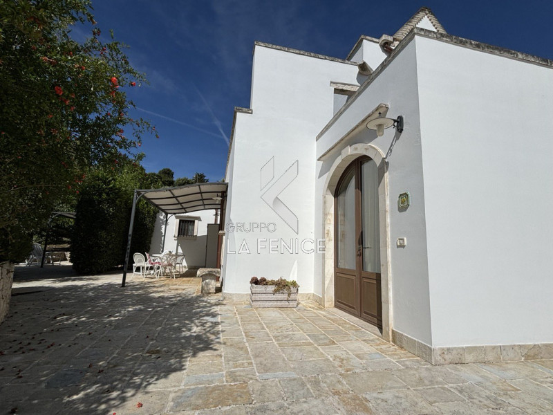 Via Ostuni, a soli 500 metri dal paese, con affaccio sulla Valle D'Itria, proponiamo in vendita casale finemente ristrutturato, suddiviso in tre unità indipendenti fra loro con annesso trullo di circa 25 mq, distaccato dal corpo di fabbrica principale. La struttura è immersa in un contesto suggestivo della tipica campagna pugliese, all'accesso infatti siamo accolti da un viale sterrato circondato da ulivi, posizionati in un terreno di circa un ettaro. Giunti nella zona parcheggio abbiamo la possibilità di arrivare al corpo di fabbrica principale mediante una strada in pietra che termina in un piazzale anche esso in pietra, colorato dalla variopinta vegetazione locale. Questo complesso immobiliare è composto da tre unità indipendenti, una al primo livello caratterizzata da un bilocale in pietra con zona giorno, alcova letto e bagno; mentre al piano terreno vi sono le altre due unità, entrambe dotate di una zona esterna di accesso munita di tutti i comfort per il periodo estivo come: pergolato, zona pranzo/cena esterna, zona relax. La prima unità del piano terra è composta da ingresso cucina con angolo cottura, disimpegno che ci conduce nella camera da letto matrimoniale e al bagno con doccia; la seconda unità più grande è suddivisa in zona ingresso soggiorno, angolo cottura, un ambiente filtro che può divenire seconda camera da letto dal quale è possibile accedere al bagno patronale ed alla seconda comoda camera da letto con bagno privato e accesso indipendente. Tutto il complesso immobiliare gode di una fantastica vista della valle, è possibile infatti ammirare oltre che alle campagne anche i borghi circostanti come Locorotondo e Cisternino, questa meravigliosa vista è conservata anche nella zona piscina che completa l'atmosfera magica di questa struttura. L'immobile è dotato di acqua potabile, rete elettrica, gas, impianto di riscaldamento con termosifoni alimentati da caldaia a gas e di impianto di condizionamento d’aria con l’installazione di split. Attualmente questa struttura viene utilizzata come struttura ricettiva; si può valutare anche di utilizzarla come prima casa e/o investimento. --- annuncio pubblicato con GESTIONALEIMMOBILIARE.it